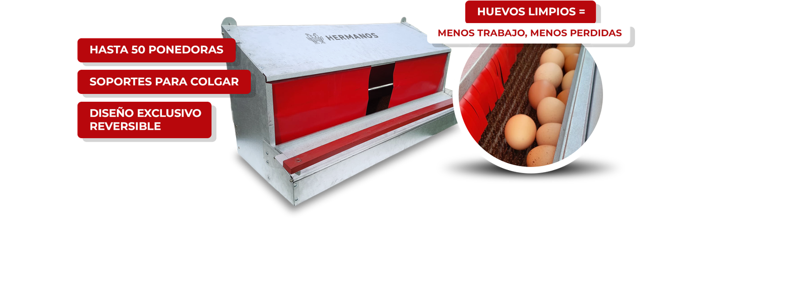Reducción significativa en la necesidad de limpieza y desinfección constante de los nidales. Diseño especializado que elimina en más del 90 % que los huevos se ensucien o contaminen con heces.